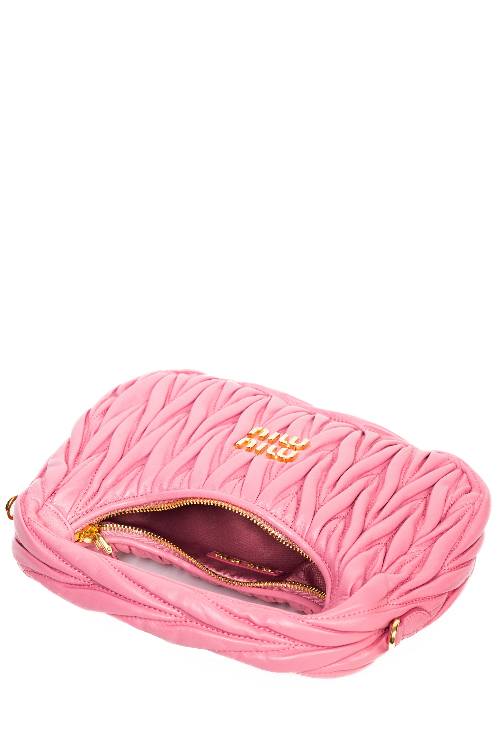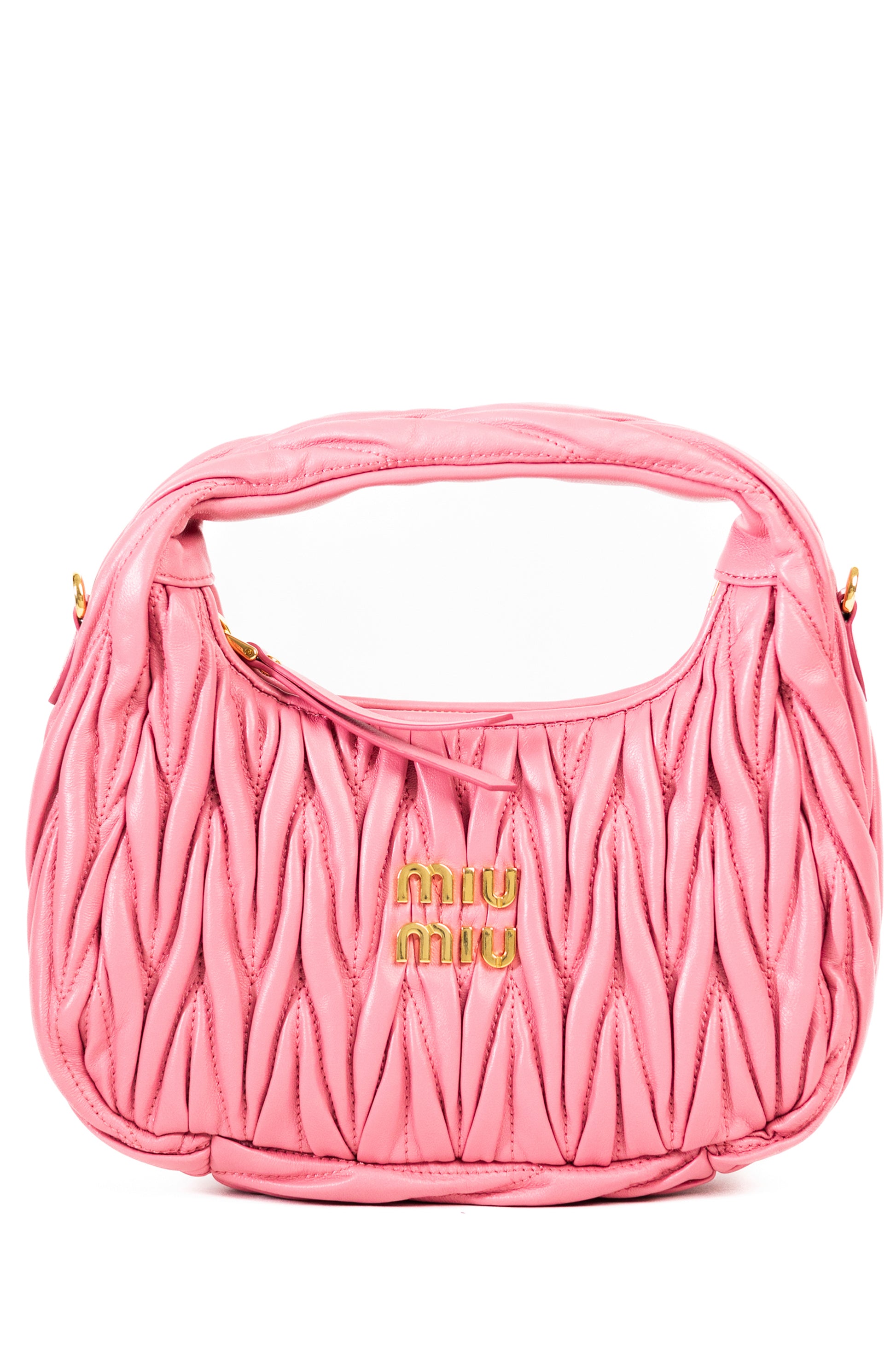 Reinterpreted every season, Miu Miu’s iconic Wander bag comes in a light pink hue. It's crafted from nappa leather with the brand's iconic matelassé texture and is accented with gold-tone logo lettering on the front.