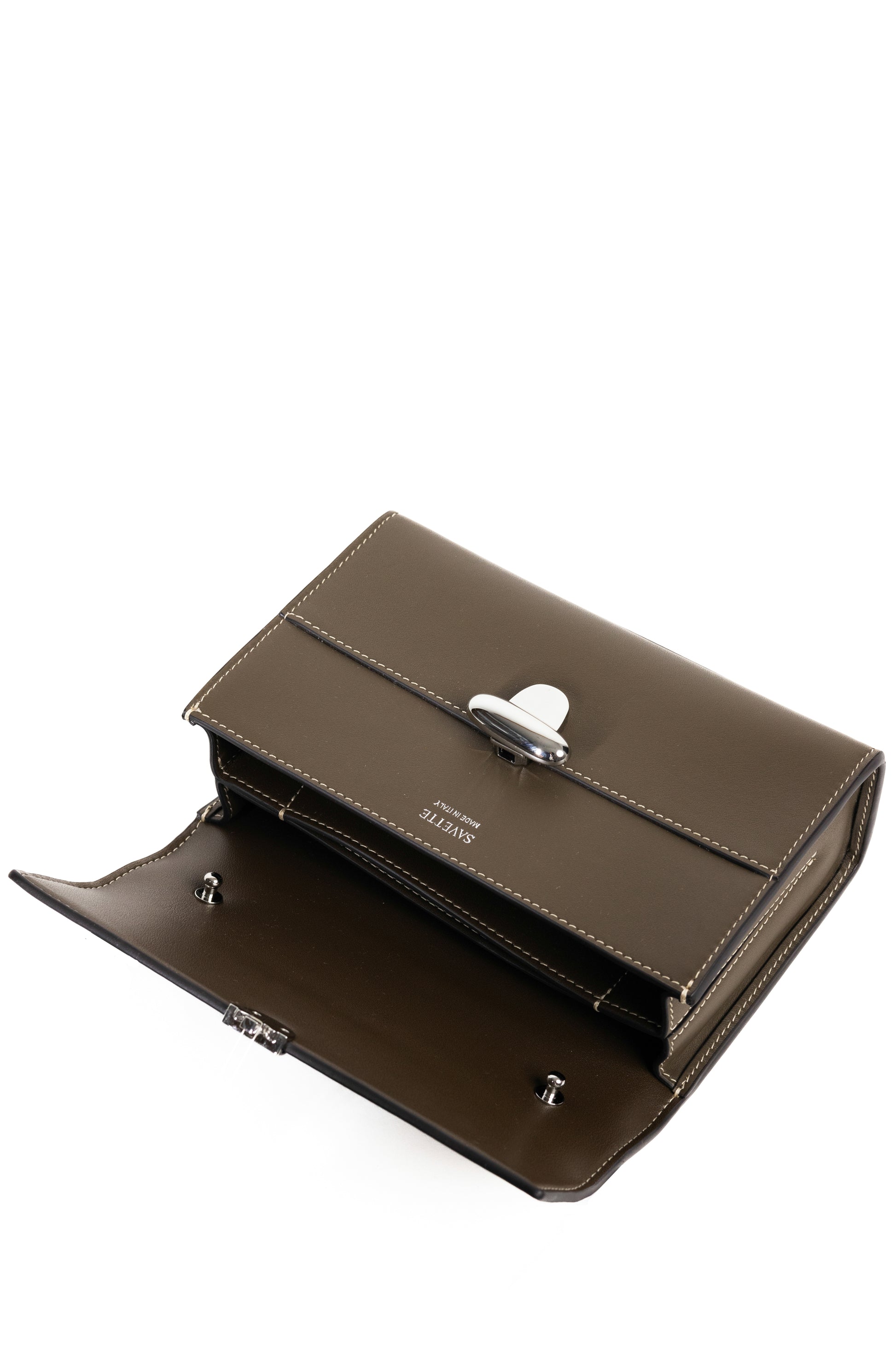 The Savette Symmetry 19 Bag from the new 'Symmetry' collection embraces the beauty of geometric shapes, namely parallel and perpendicular lines. Expertly crafted in Italy, this Pochette tote boasts a sleek and minimalist design, accented with lustrous silver-tone hardware. Inside, you'll find enough room to store your phone, keys, and wallet with ease.