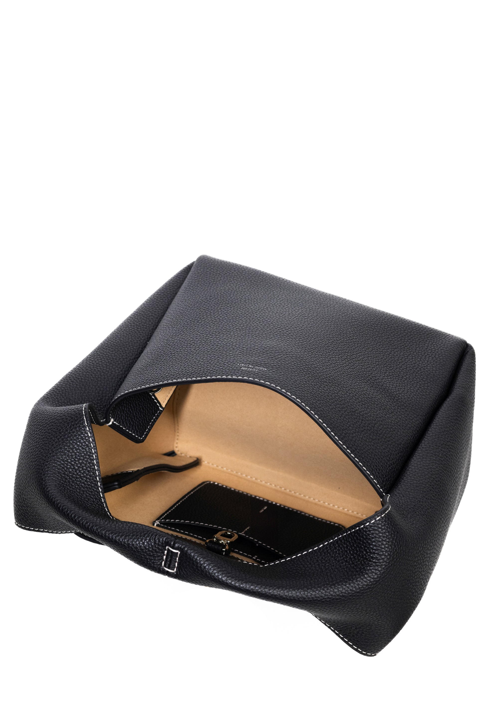 This minimalistic bucket bag from Toteme is perfect to hold your everyday essentials. Made from grained leather, the practical design has a folded top handle and comes with a detachable, adjustable strap for versatile carrying.